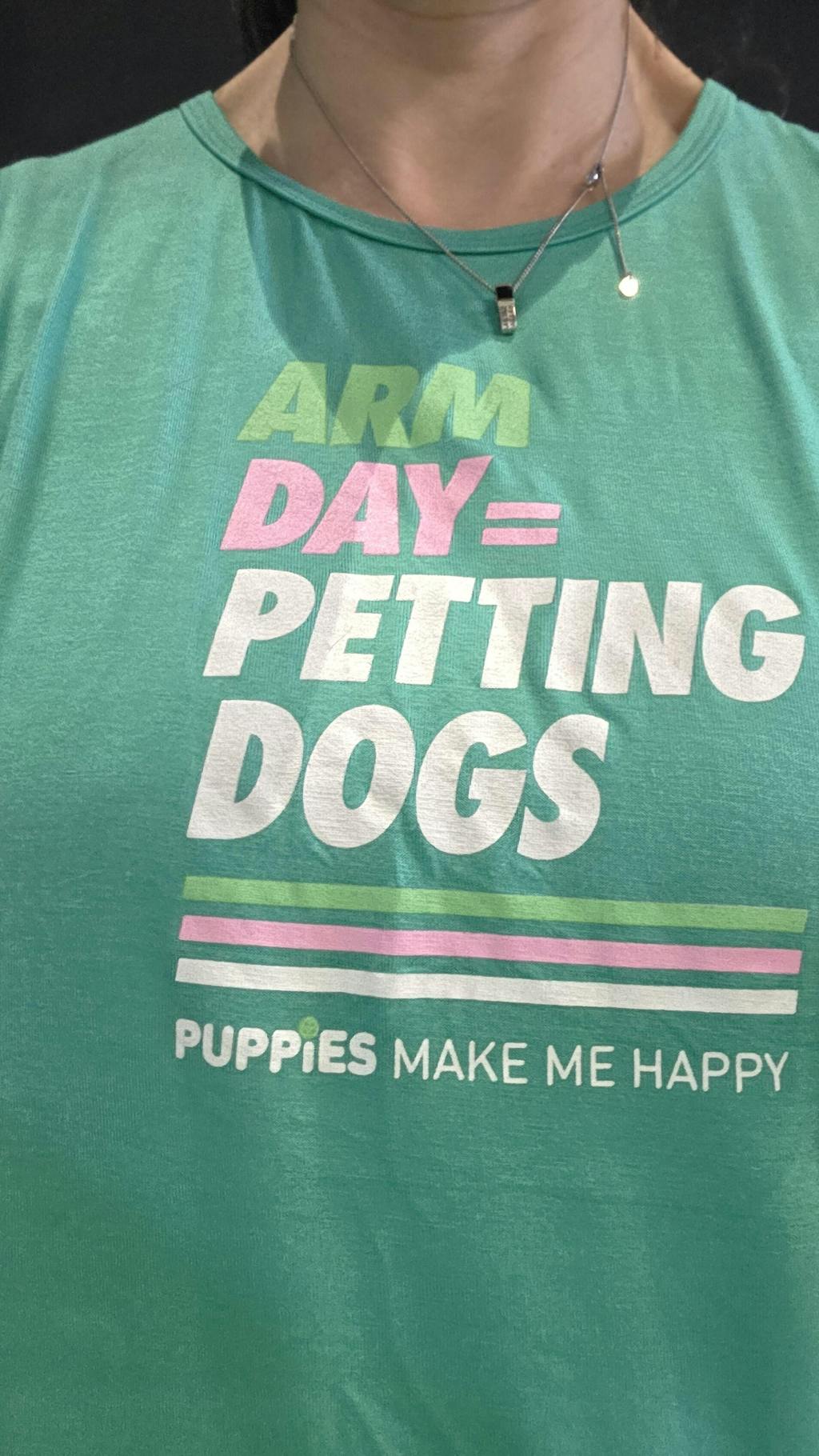 Playful “Arm Day = Petting Dogs” graphic that brings smiles everywhere you go