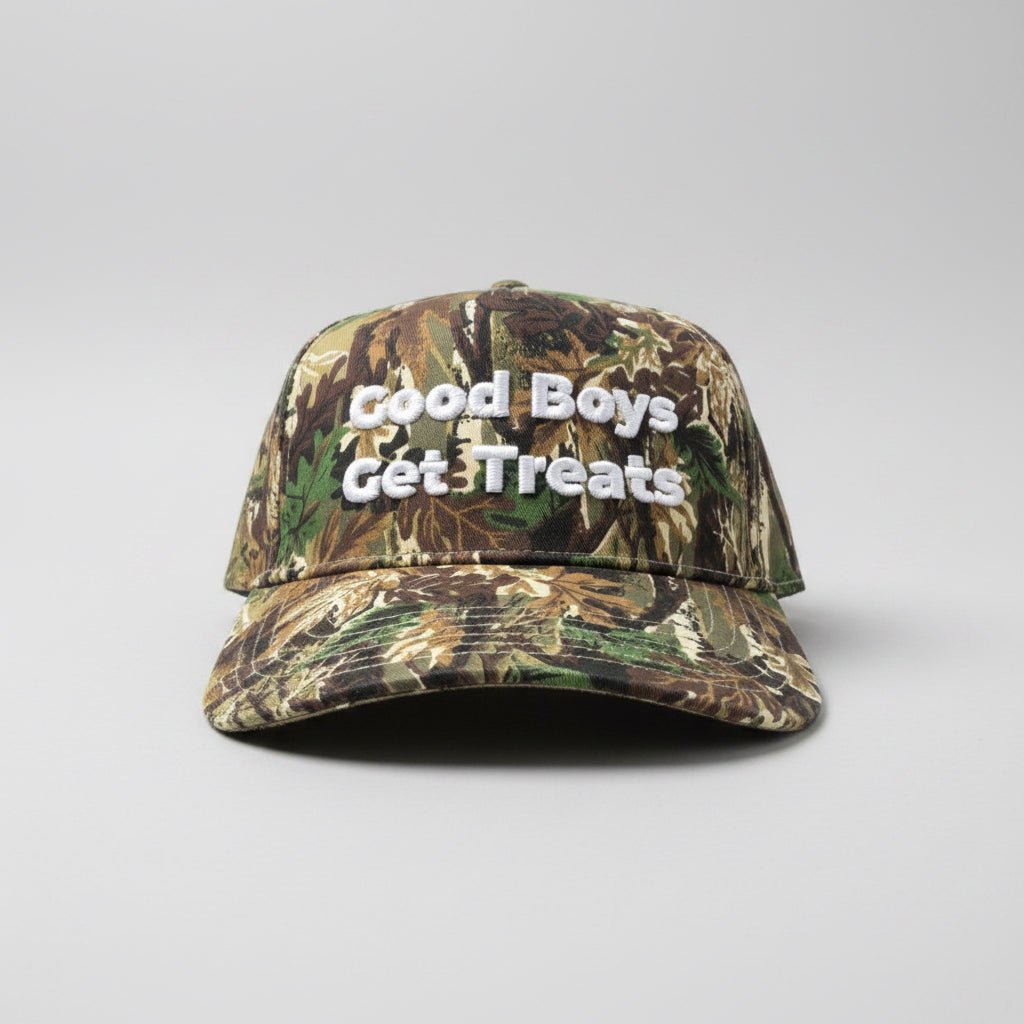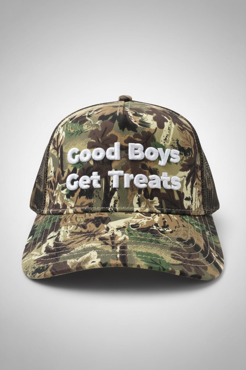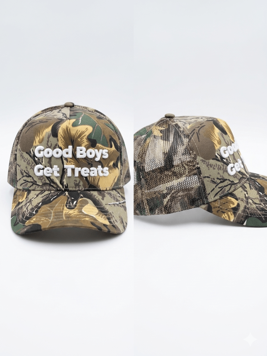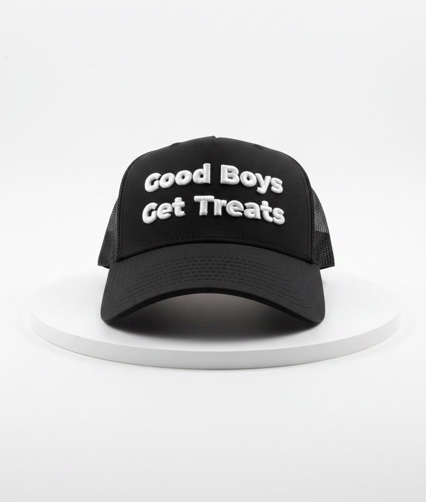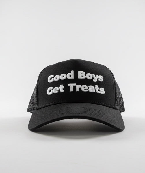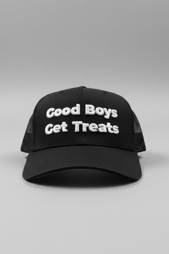 Bold Embroidery: Features the iconic "Good Boys Get Treats" text in high-quality white embroidery that pops.